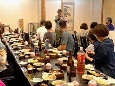 夜の慰労会のあいさつ この後盛り上がります。 |