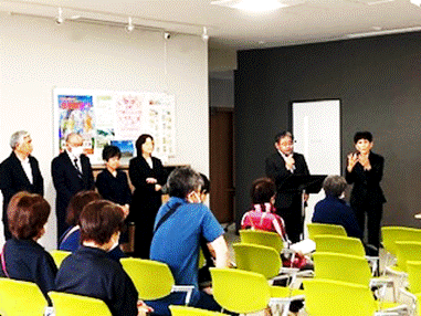 社協事務局長さんも参加されあいさつを。 手話も慣れたものです。 |